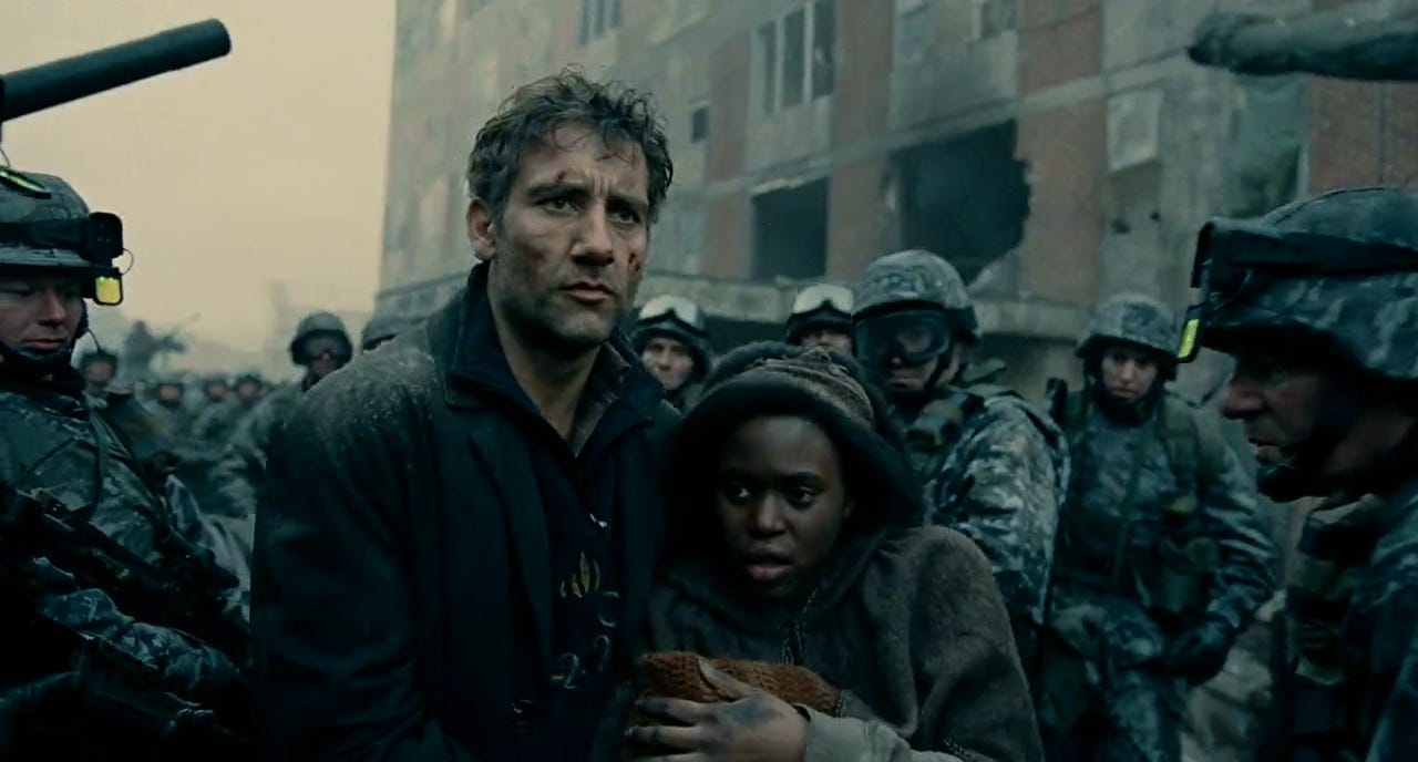 Unsurprisingly and sadly, the film under-performed at the box-office, despite the critical acclaim it built from its premiere at the 63rd Venice International Film Festival to later14. Perhaps Cuarón can take solace in Children of Men’s longevity, with many—including myself—discovering it years later on home media, and loving the film15. Slovenian philosopher and cultural critic Slavoj Žižek, whose work Cuarón studied for prep, is one of the film’s biggest fans: “A good portrait is more you than you are, yourself, and I think this is what the film does with our reality,” he says in a documentary featurette that accompanied the DVD release. “It simply makes reality more what it already is.”