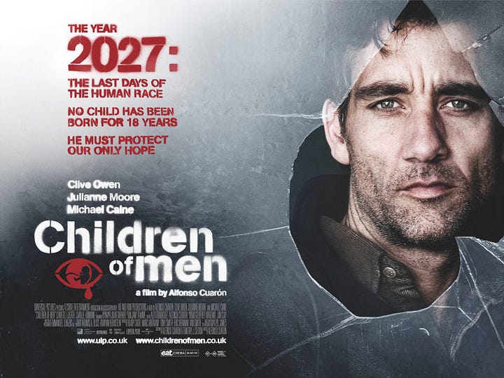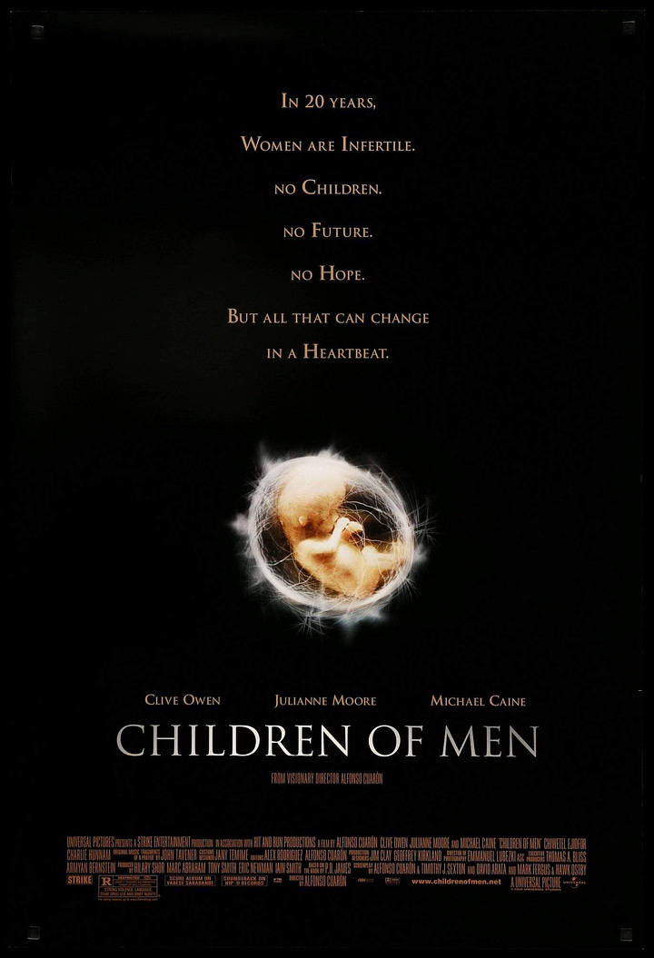No, he’s more interested in what happens after the fact; that’s the story. It’s up to us to fill in the blanks about how the world got there1. Viewing the fertility crisis as a “metaphor for the fading sense of hope”, Cuarón saw a promising story about now and the future.