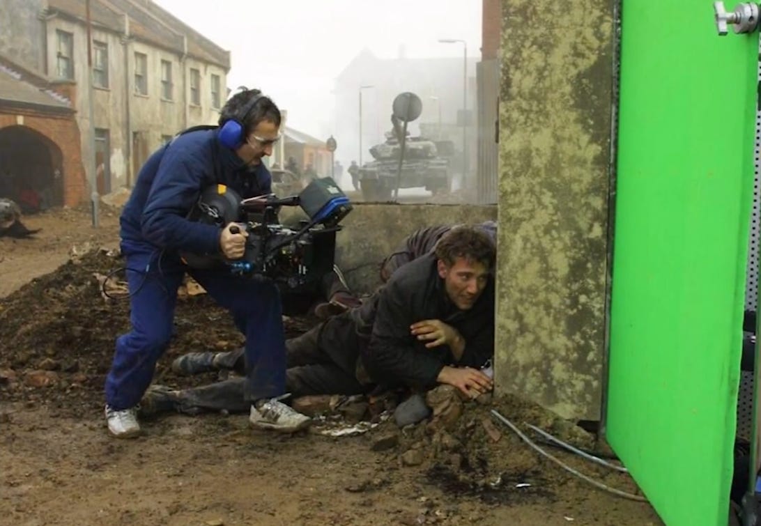 Cameras rolled. Cuarón watched on the monitor. So far, so good. They reached a hollowed-out bus through which Theo had to scamper amongst people hiding. Suddenly, to the director’s horror, a squib misfired and a squirt of fake blood hit the lens. It felt like the end of the world for Cuarón.