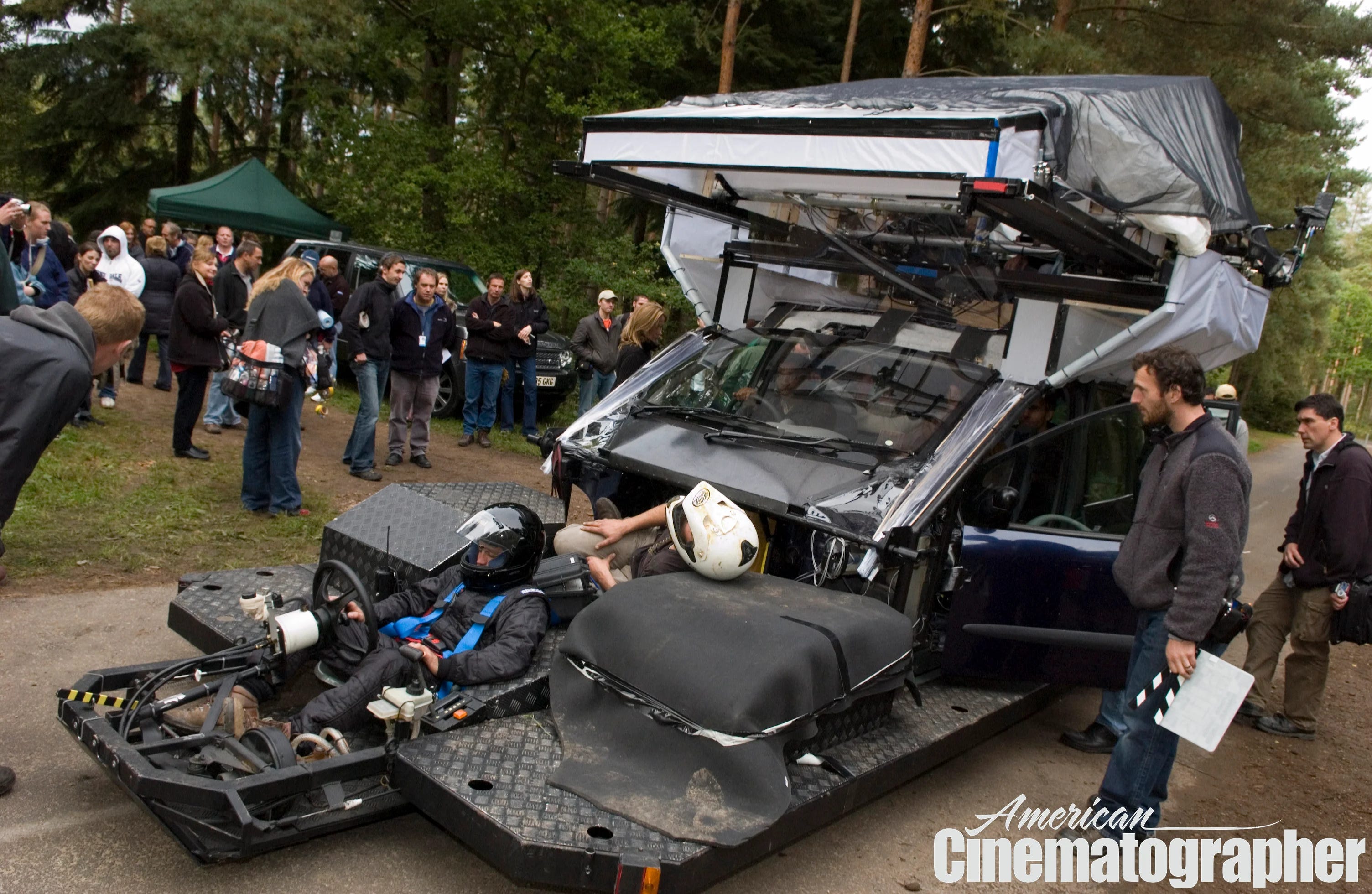The friend was cinematographer and owner of Doggicam Systems Gary Thieltges, who had created a wireless camera dolly called PowerSlide that had the ability to rotate within the car and could be controlled by a stunt driver. The car was modified, making it possible to lift and lower the seats to get the actors out of the camera’s way, as well as the windshield that could tilt and allow the camera to move freely through it. The cast spent two days rehearsing the complicated choreography. The results are absolutely stunning.12