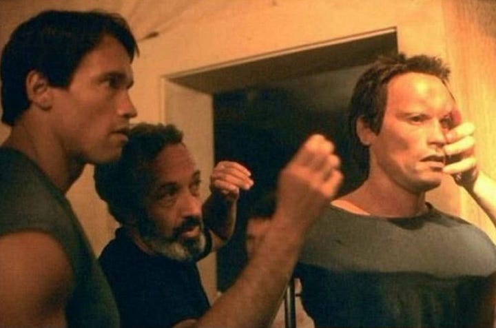 Cameron’s apprenticeship with Roger Corman taught him how to stretch a tiny budget to look like a million bucks on the screen; and even though Terminator’s budget was small, he wanted the limited special effects to look as good as it could possibly be. And to him, there was only one man for the job: Dick Smith, the makeup artist from The Godfather and Taxi Driver.
