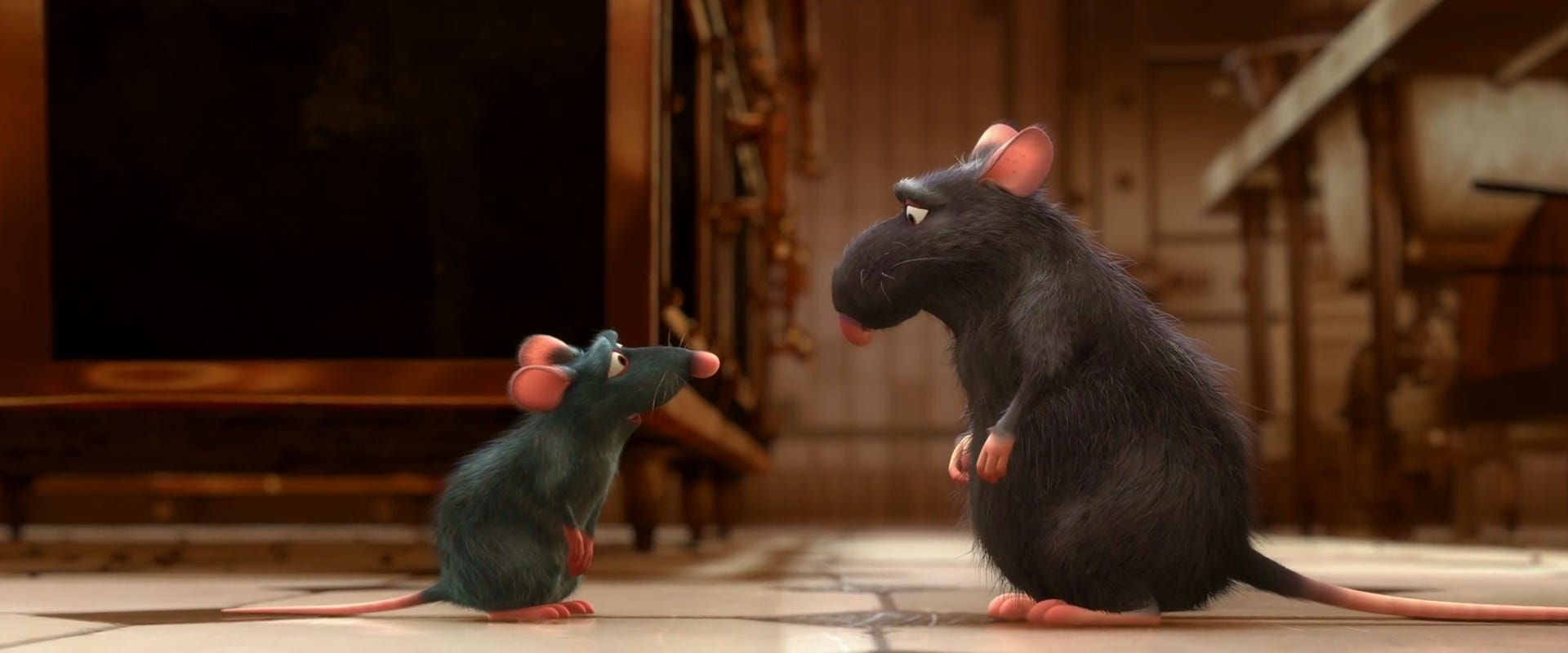 In comparison, the bond between fathers and sons in Ratatouille exists more in the background. I don’t think this was always the case, but I’ll circle back to this point later. For now, let’s look at the prominent father-son relationship here, between the protagonist Remy and his father, Django.